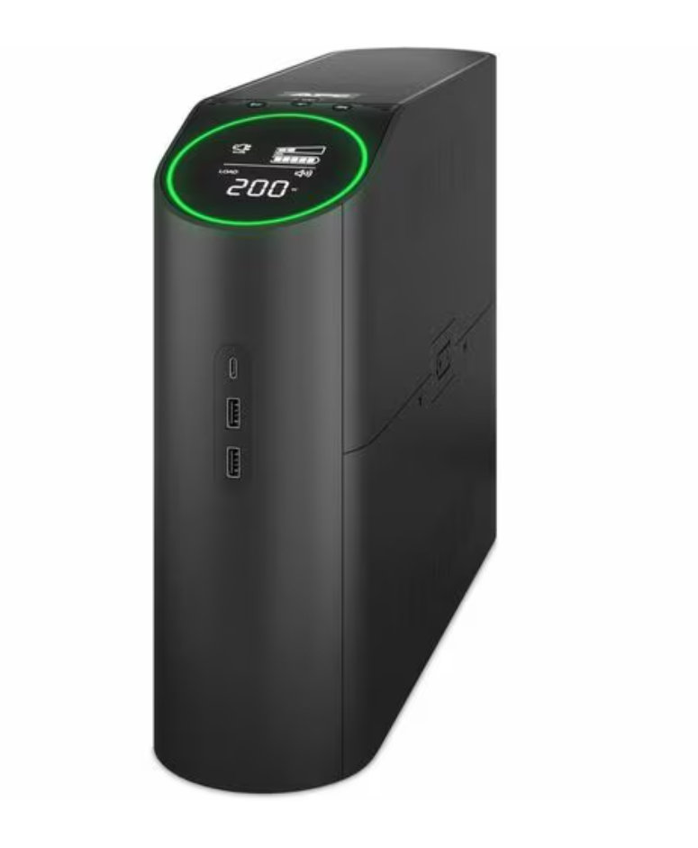 This APC Back-UPS Pro offers premium power protection for high performance gaming consoles and PC, routers/modems, and gaming accessories. The 2200VA/1320W tower UPS has 6 total outlets, 3 of which are battery back up and surge protection, and 3 that are surge protection only. It has a surge energy rating of 1080 Joules. It features Automatic Voltage Regulation to correct voltage dips and surges to proper levels. It comes with PowerChute Serial Shutdown, an easy-to-use safe system shutdown software with power and energy management features. This UPS has a 2 year repair or replace warranty, 3 year repair or replace for European Union countries only. It has 3 USB ports (Type A + C) for smart charging of personal devices.